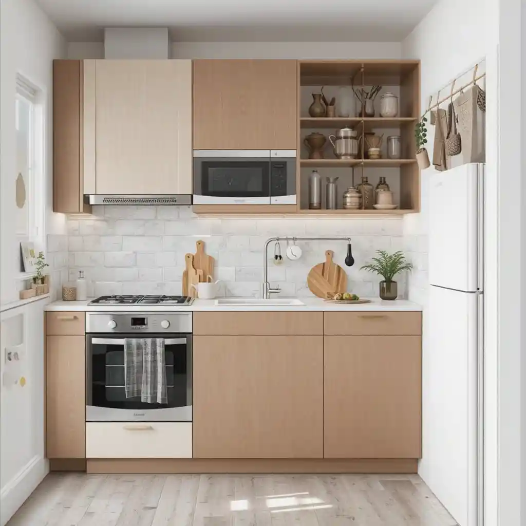 Install IKEA’s floating shelves to store everyday essentials like mugs, spices, or plants while adding a modern and airy touch.