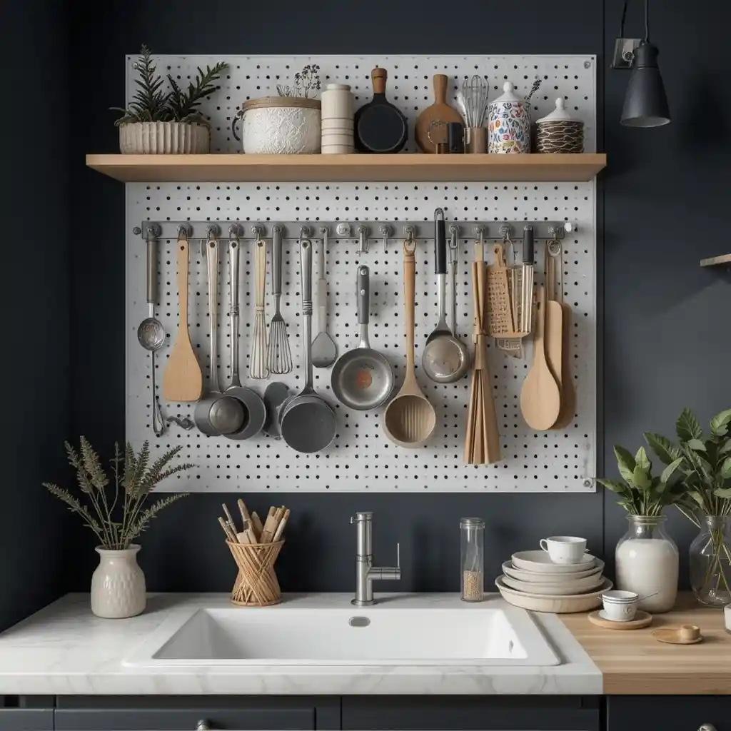 18. Add a Pegboard Wall for Functional Decor