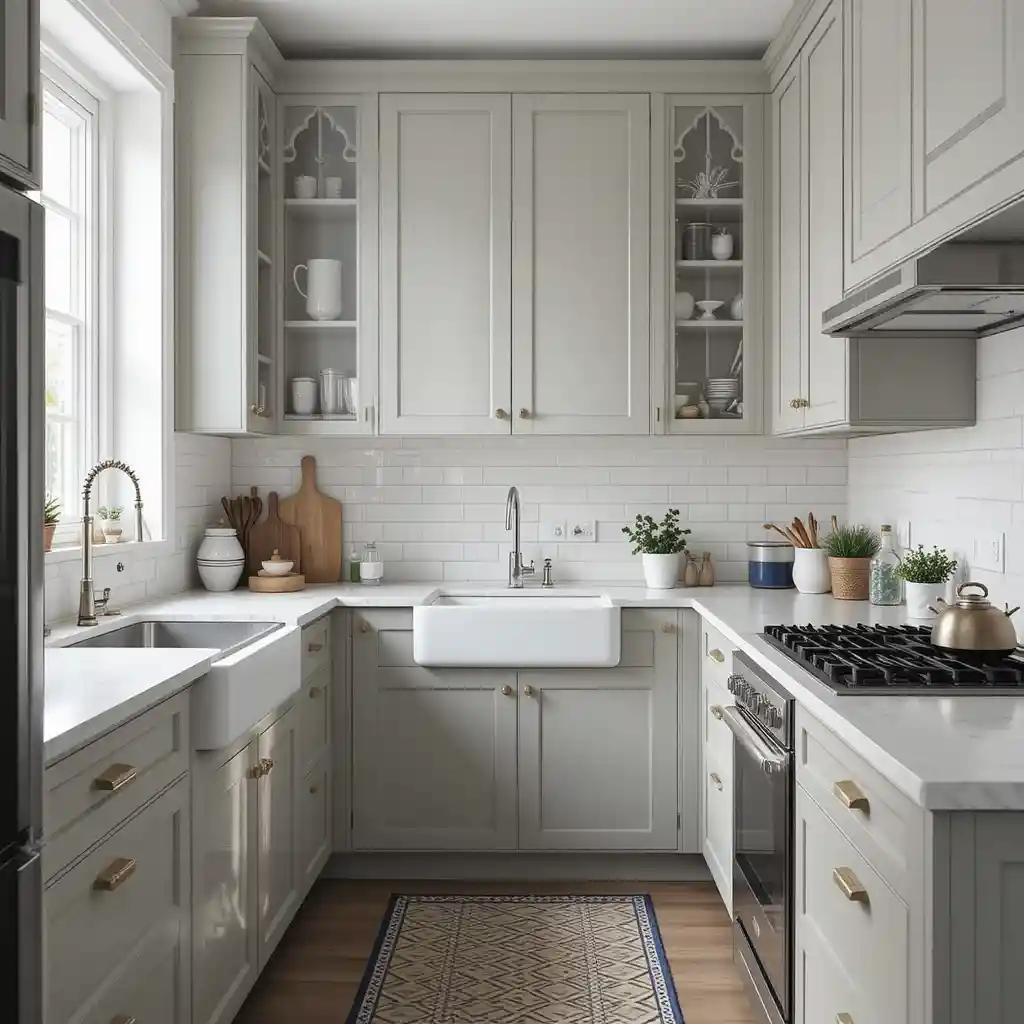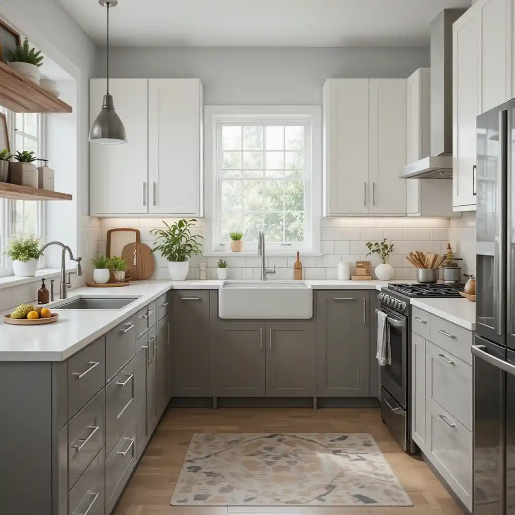 Combine upper white cabinets with darker lower cabinets to add depth and dimension without overwhelming your space.