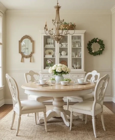 Pastel shades like blush, mint, or pale blue add subtle color. They keep the space light and fresh while enhancing shabby chic charm. Pastels pair beautifully with white décor.