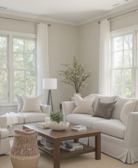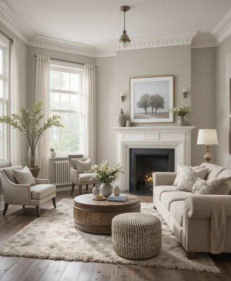 This balanced neutral blends beige warmth with gray softness, making it incredibly versatile for every room and lighting condition. Below are 20 unique ways to use this shade beautifully in your home.