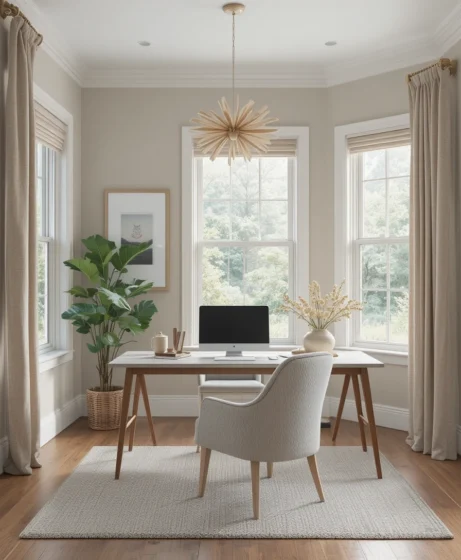This color reduces visual distractions. Sherwin Williams Alpaca provides a neutral setting that supports concentration and productivity throughout the day.