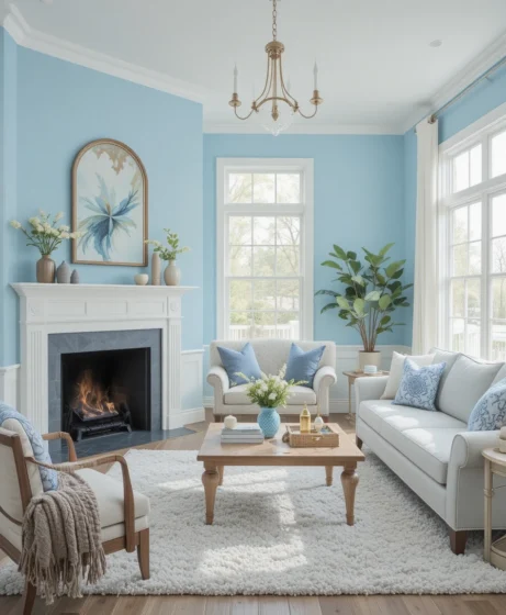 💙 If you want a home that feels relaxing, airy, and naturally uplifting — sky blue is a perfect choice.