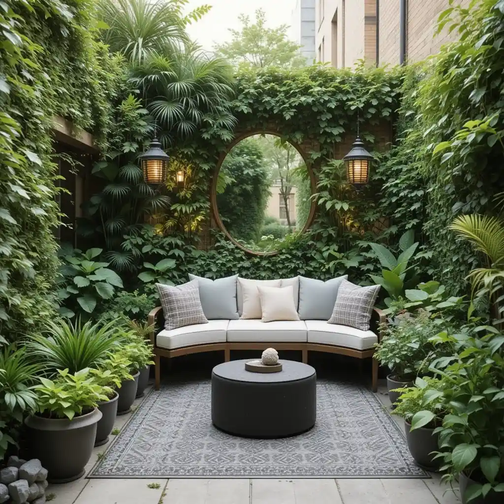 Strategically place mirrors to reflect light and greenery, giving the illusion of a larger garden. It’s a stylish trick to open up cramped spaces.
