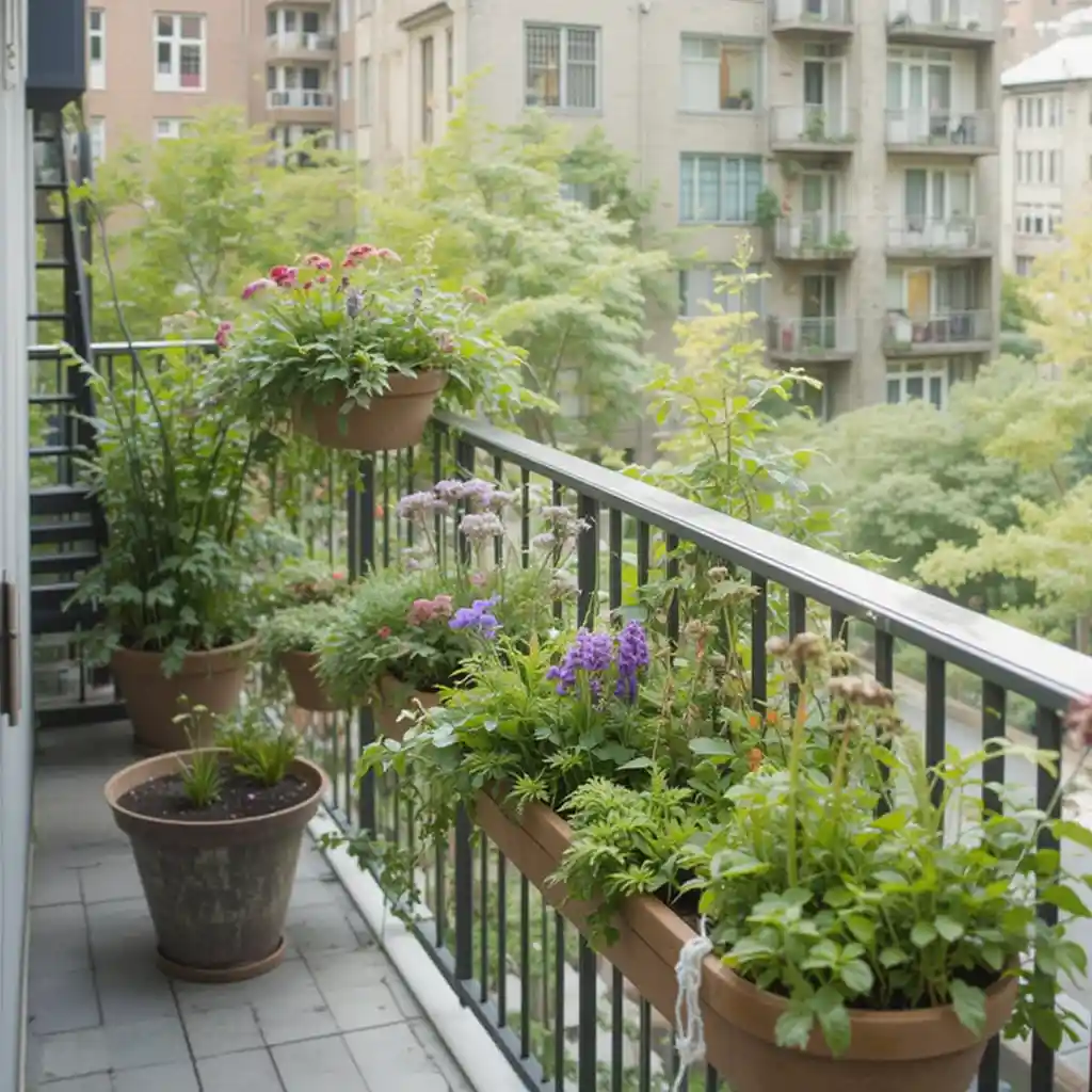 Hang planters directly on your balcony railings to add green beauty without using any floor space. Perfect for herbs, flowers, or small edibles. Small Garden Ideas