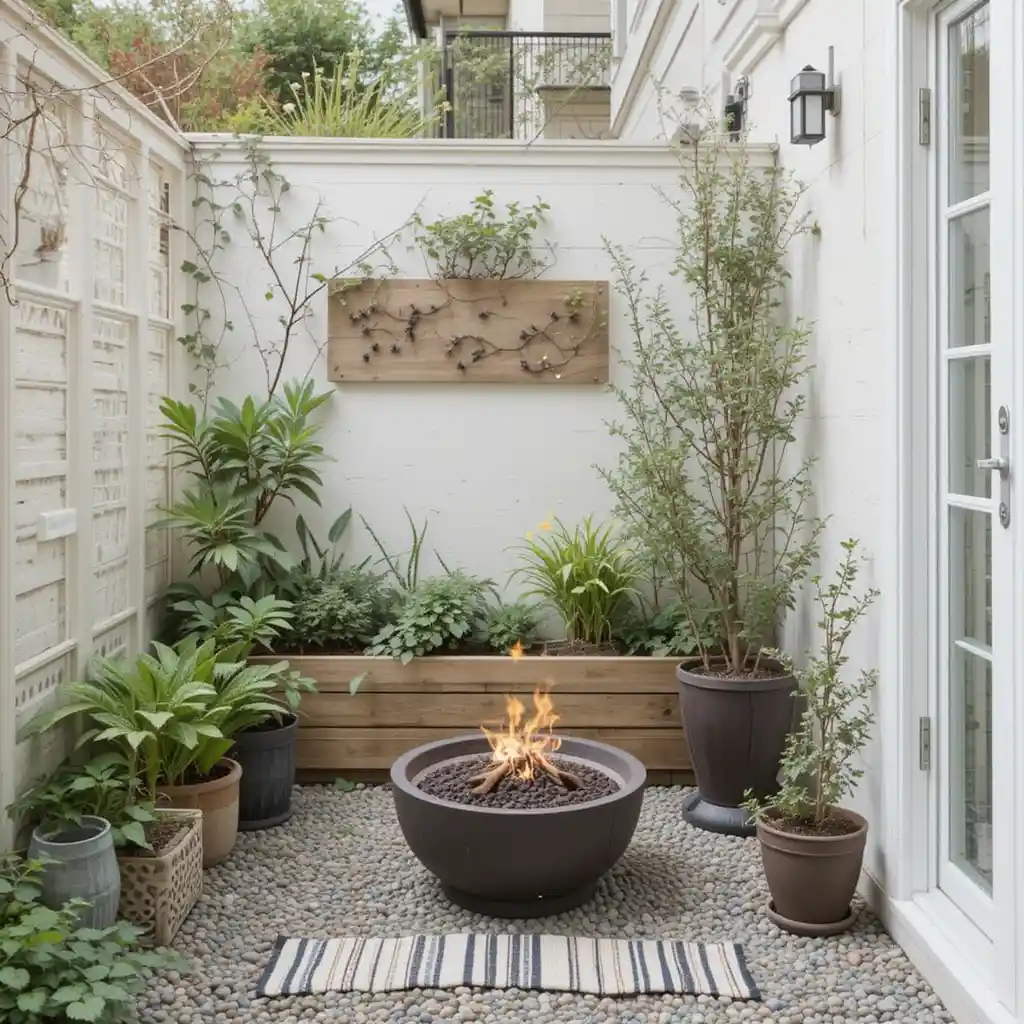 Consider a mini fire pit or tabletop burner to warm up chilly evenings. These small additions turn your garden into a year-round retreat. Small Garden Ideas
