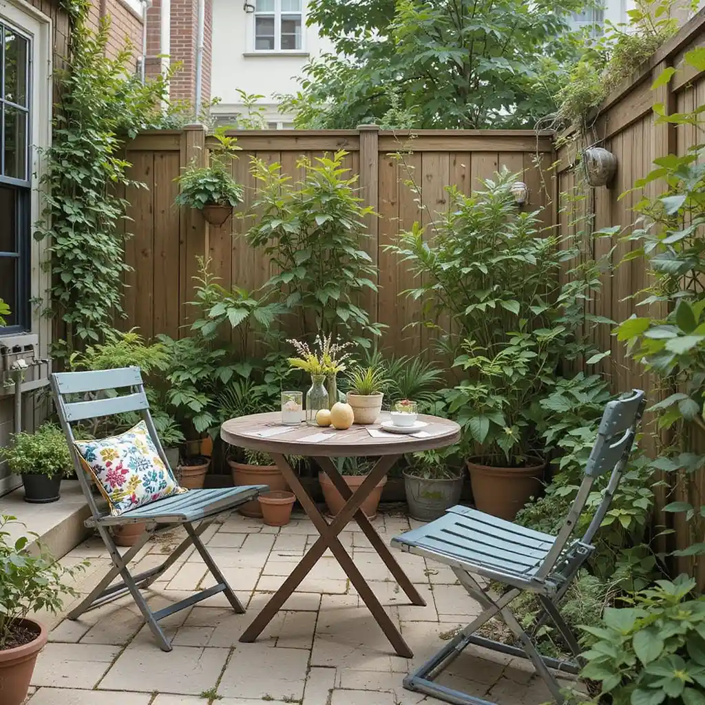 Choose folding chairs and tables that can be stored when not in use. This keeps your garden space flexible for planting or relaxing, depending on the moment. Small Garden Ideas