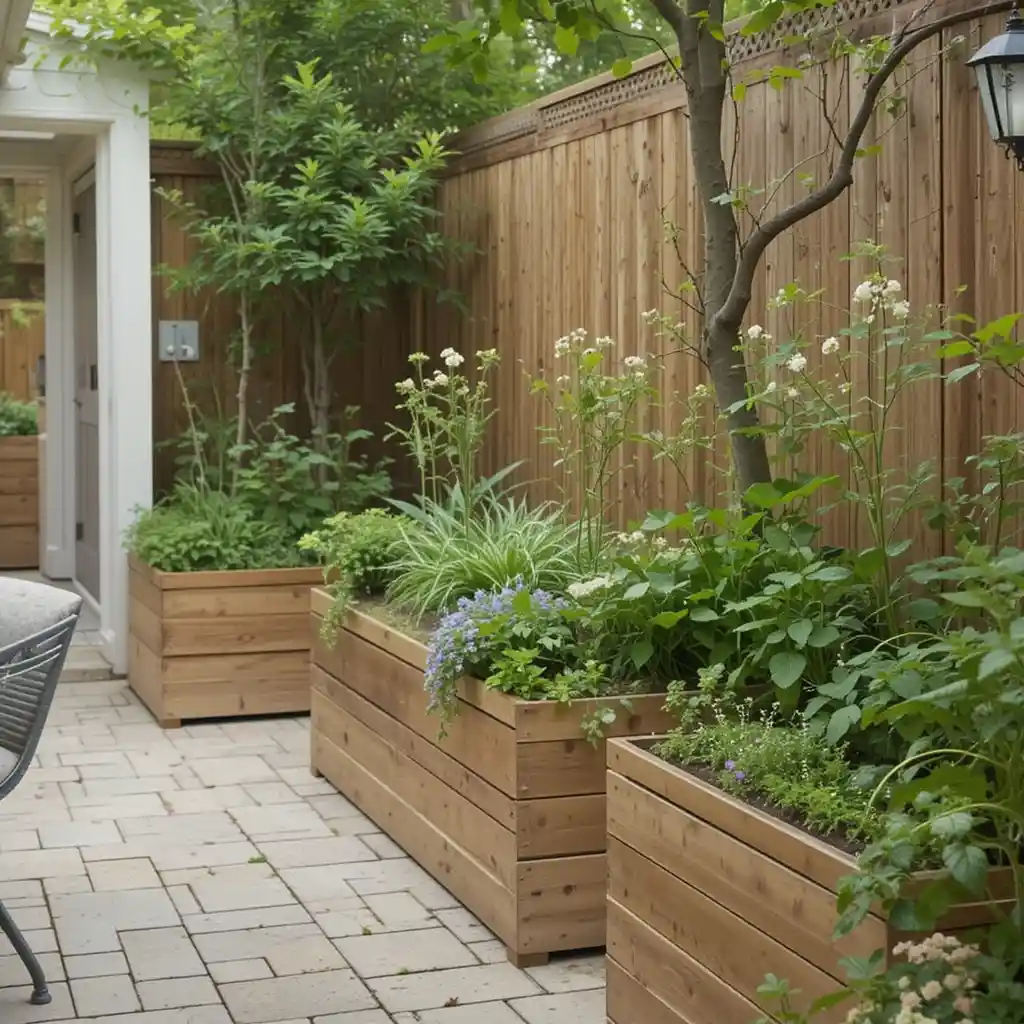 Install planters with attached seating for a dual-purpose setup. This saves room and integrates greenery into your furniture design.