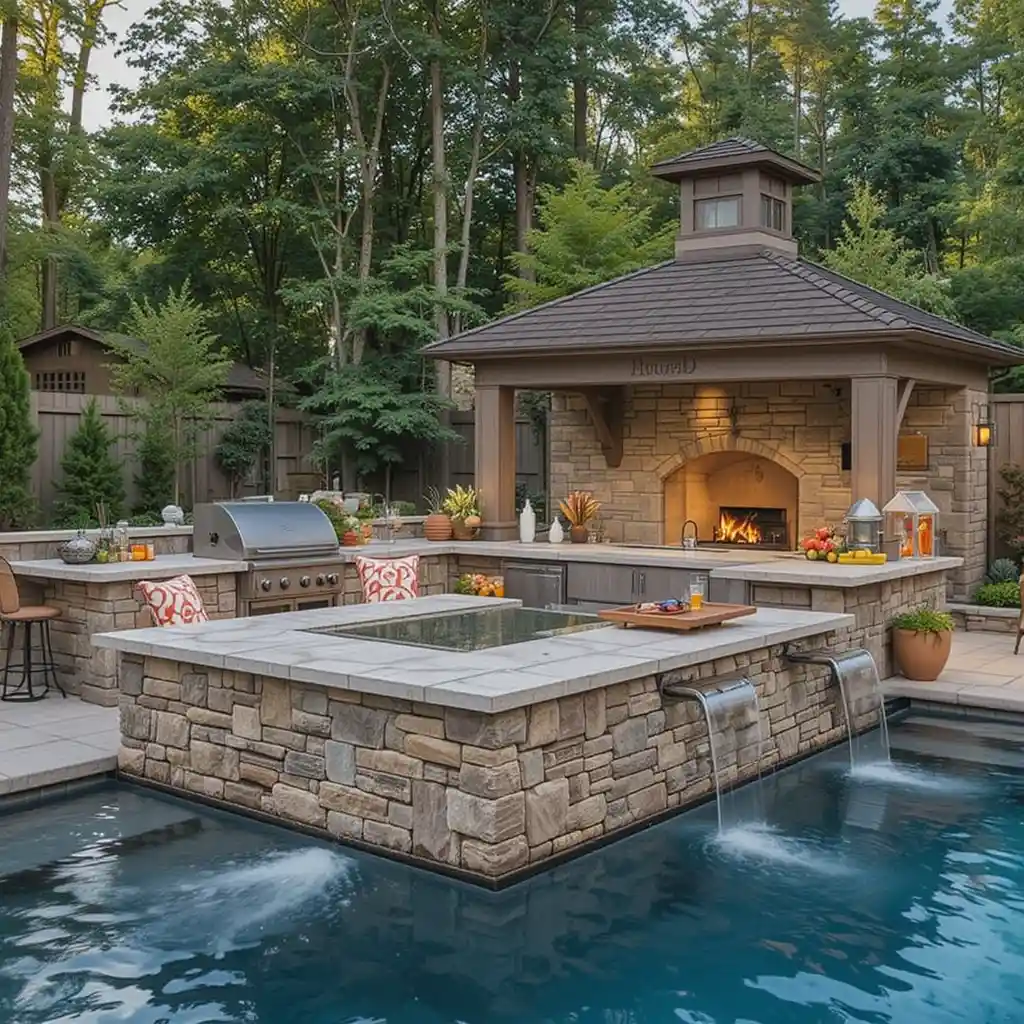 A swim-up bar connected to your outdoor kitchen allows guests to enjoy food and drinks without ever leaving the water, turning your pool into a resort-style hangout.