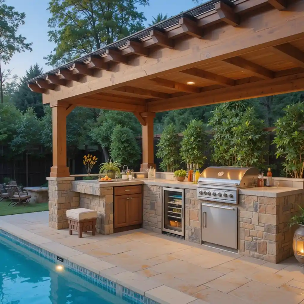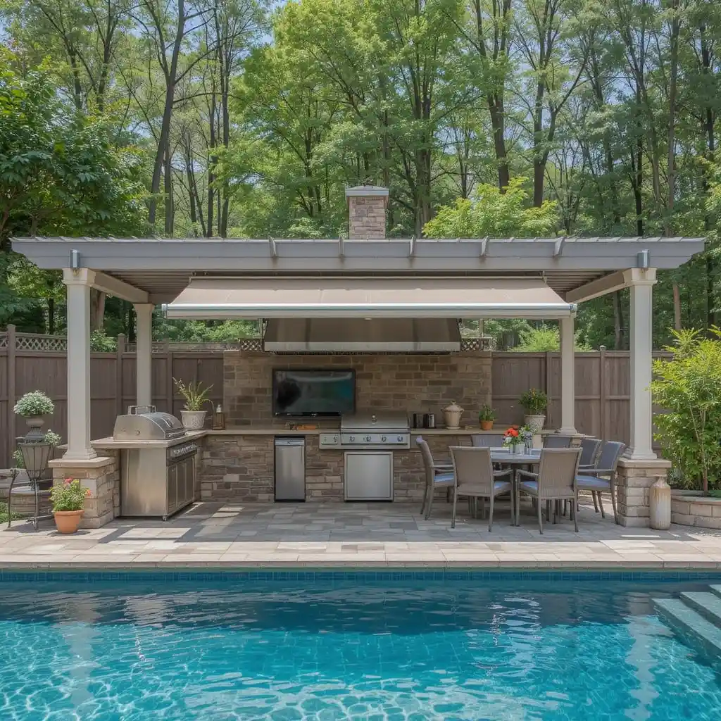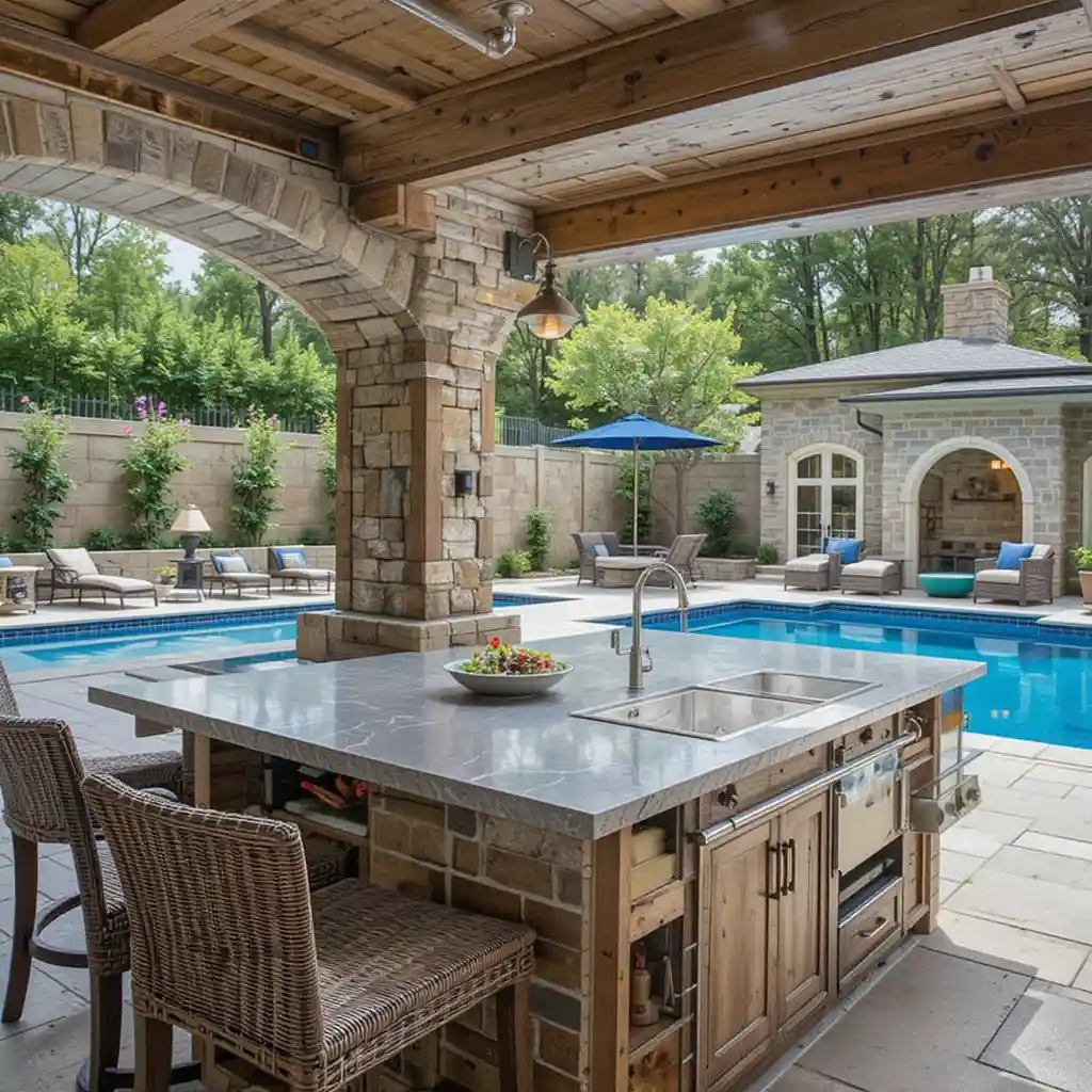 Combining an outdoor kitchen with a pool creates the ultimate backyard dream—a space where relaxation and entertaining go hand in hand.