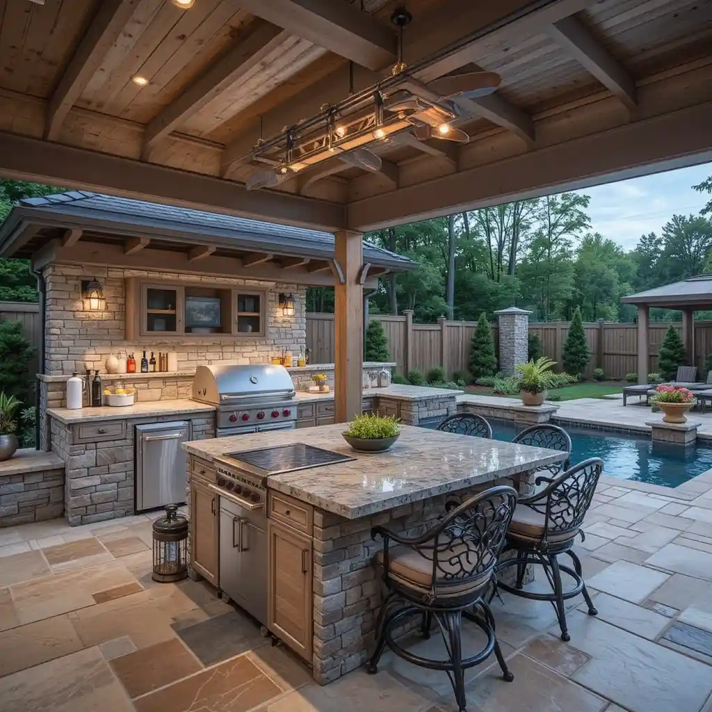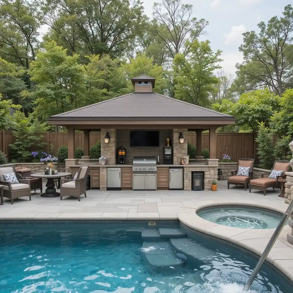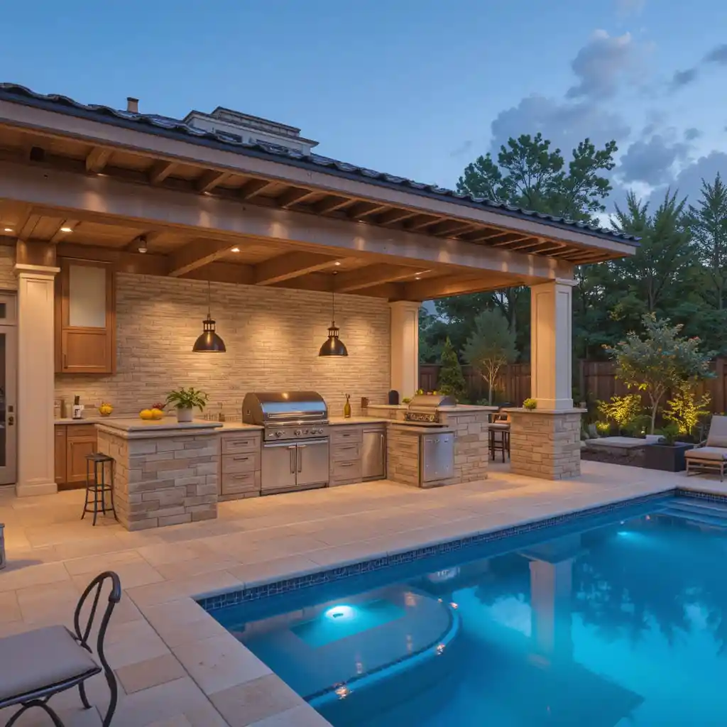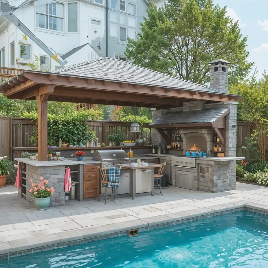 Combining an outdoor kitchen with a pool creates the ultimate backyard dream—a space where relaxation and entertaining go hand in hand.