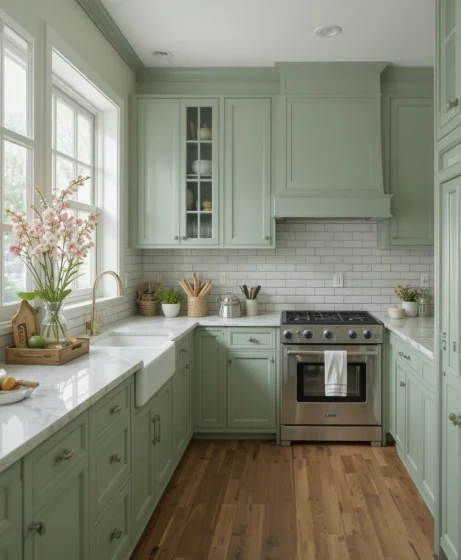 Soft sage green is one of the most popular spring colors in American homes. It feels calm, fresh, and inspired by nature. This muted green works beautifully in kitchens, bedrooms, and even clothing, giving a subtle yet stylish seasonal refresh.