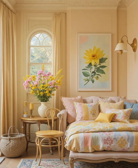 Butter yellow is cheerful and uplifting without being overpowering. This warm pastel tone brightens any room instantly. Many designers recommend butter yellow as one of the must-have spring colors for kitchens and entryways.