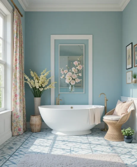 Baby blue is soft, classic, and always in style during spring. It reflects calm skies and fresh air. Many homeowners choose baby blue as one of their favorite spring colors for bathrooms and bedrooms.