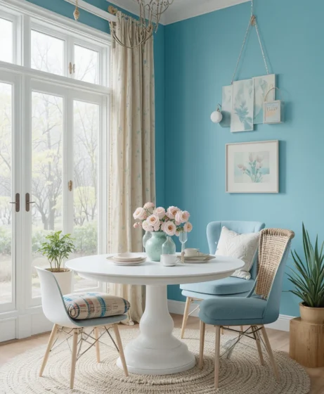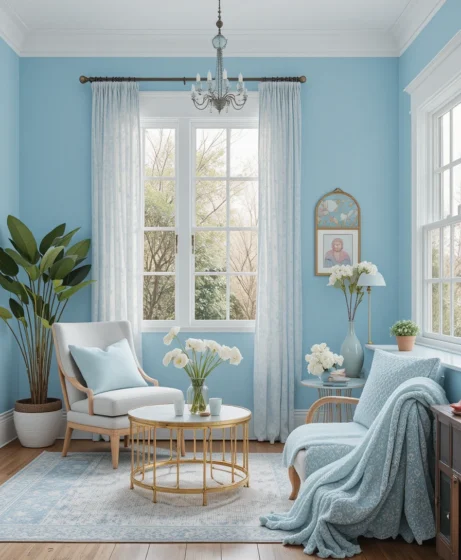 Powder blue is softer than navy and less bold than royal blue. It feels gentle and inviting, making it perfect for living rooms and nurseries. As one of the lighter spring colors, it pairs well with whites and creams.