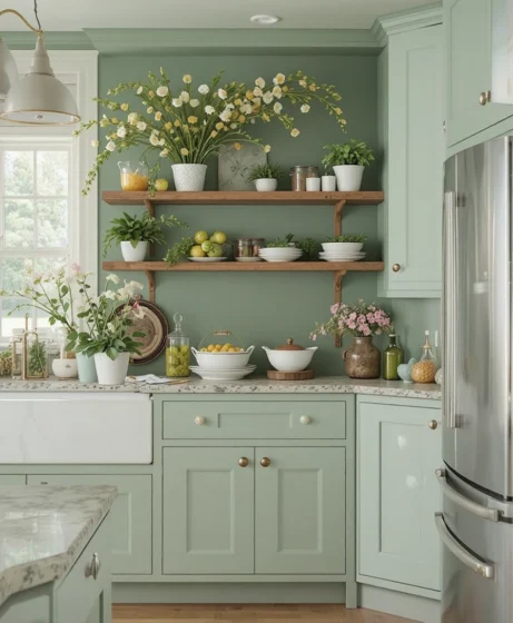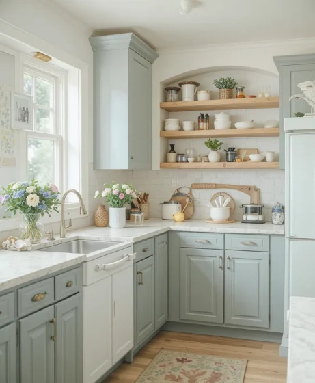 If you’re ready for a bigger change, paint cabinets in soft cream, light blue, or sage green. Lighter tones reflect spring beautifully. Spring kitchen decor renovations like cabinet updates can dramatically transform your space.