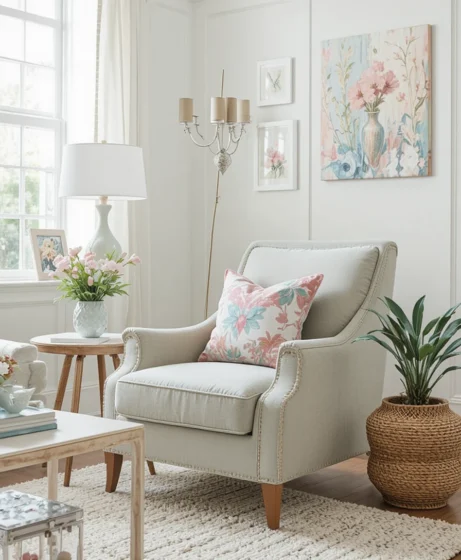 A single accent chair in a spring color or fabric adds personality. It also creates extra seating without crowding the space.