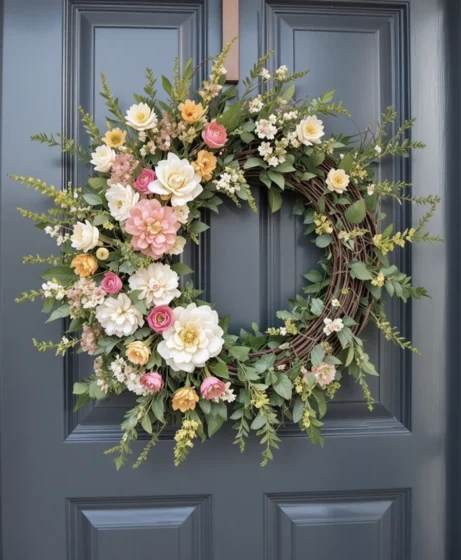 3. Pastel Blossom Front Door Wreath