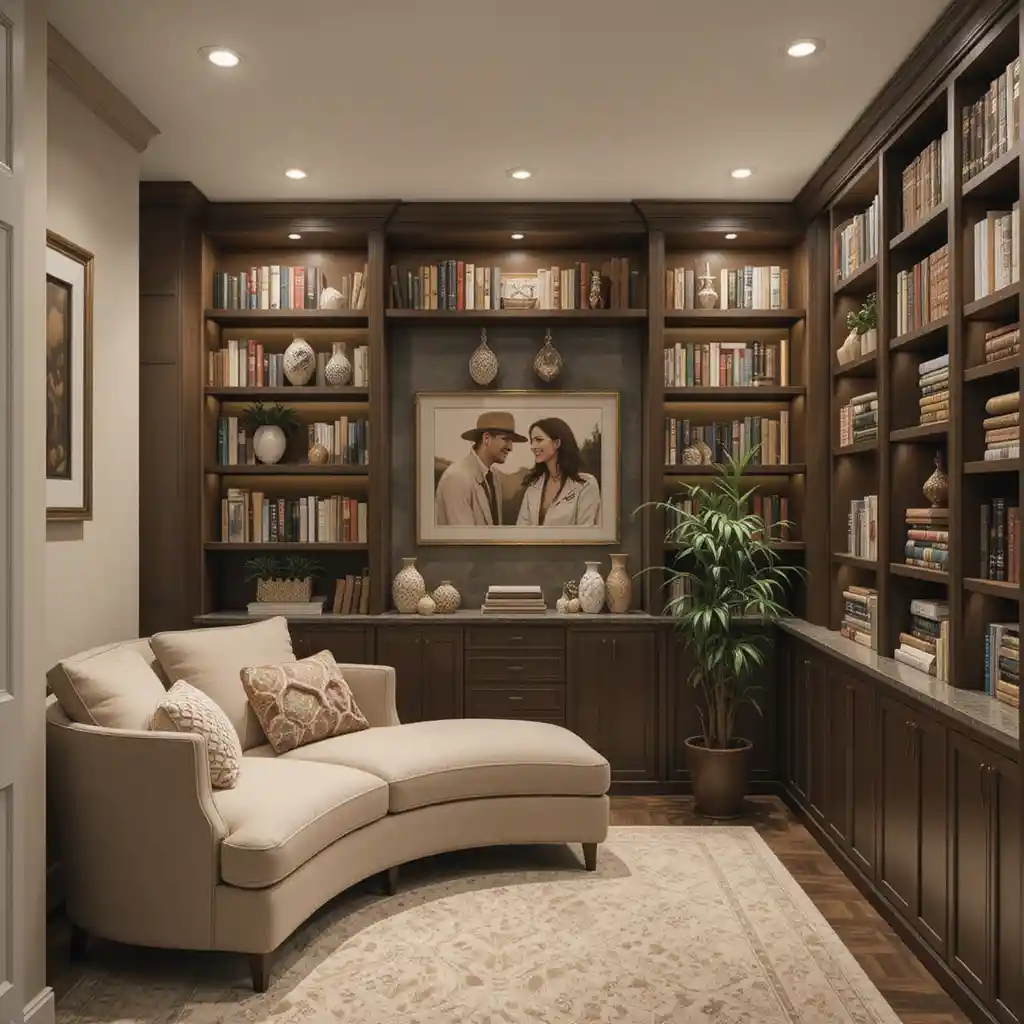 Line the walls with bookshelves and add a comfy chaise lounge and cozy lighting. Use neutral tones and soft textures to invite hours of reading.