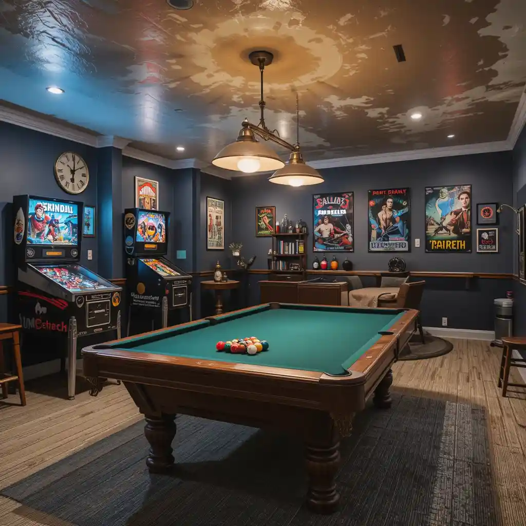 Incorporate a pool table, pinball machine, and retro posters to create a nostalgic fun zone. Use bold colors and vintage lighting for the right vibe. Stylish Basement Ideas