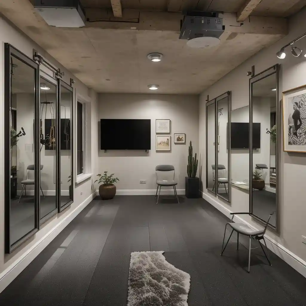 Use rubber flooring and full-length mirrors to build a functional fitness area. Add smart lighting and a Bluetooth speaker for motivation.