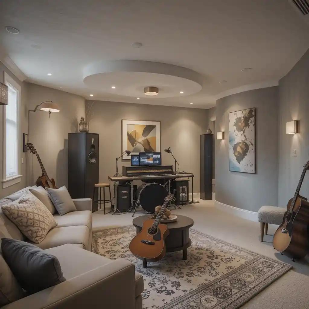 Soundproof the walls and bring in instruments to make a personal music room or recording studio. Add soft lighting and art for creative inspiration.