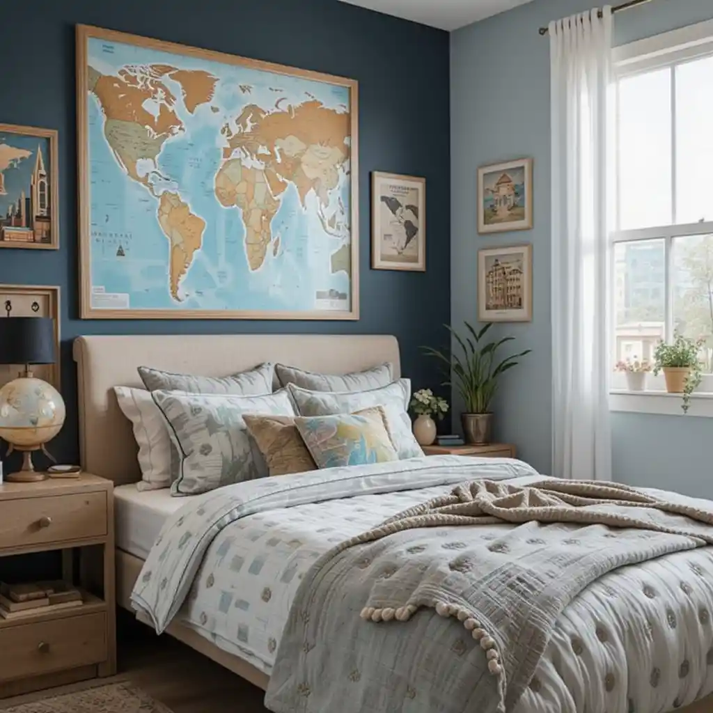 Incorporate maps, globes, and travel photos for a wanderlust-inspired room. It sparks imagination while reminding teens of their dreams and adventures. Teen Bedroom Ideas