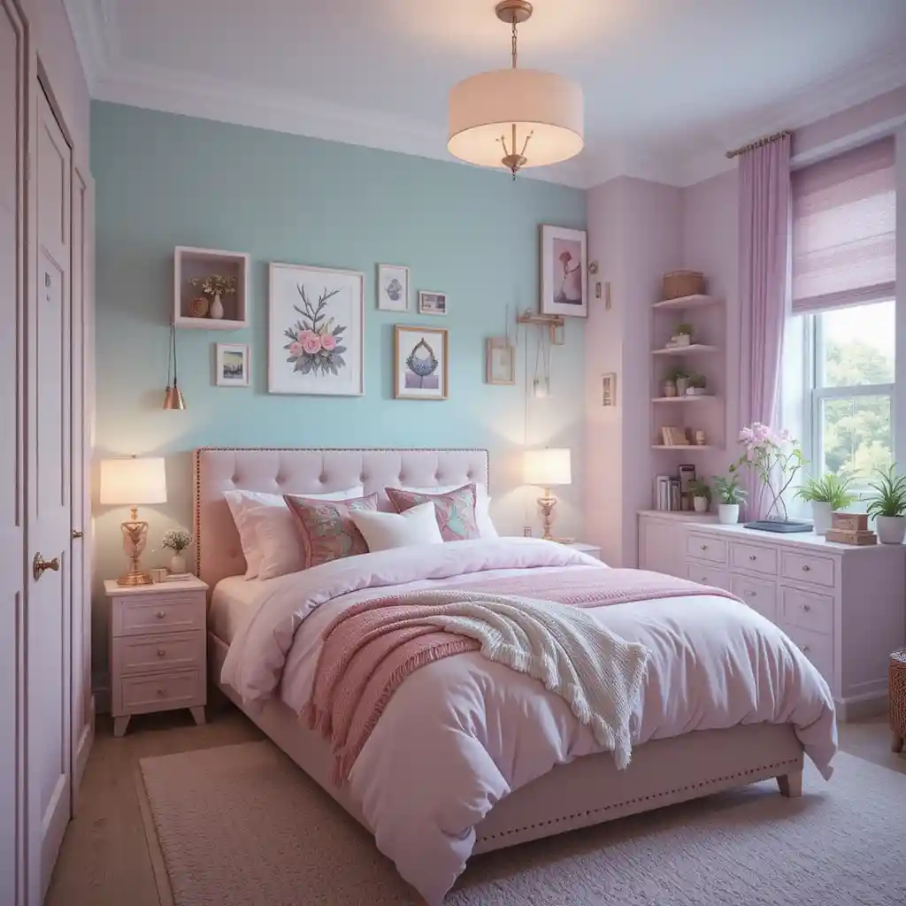 Use calming pastel tones like blush pink, mint green, or lavender for a serene, stylish bedroom. This color scheme makes the space feel refreshing and welcoming. Teen Bedroom Ideas