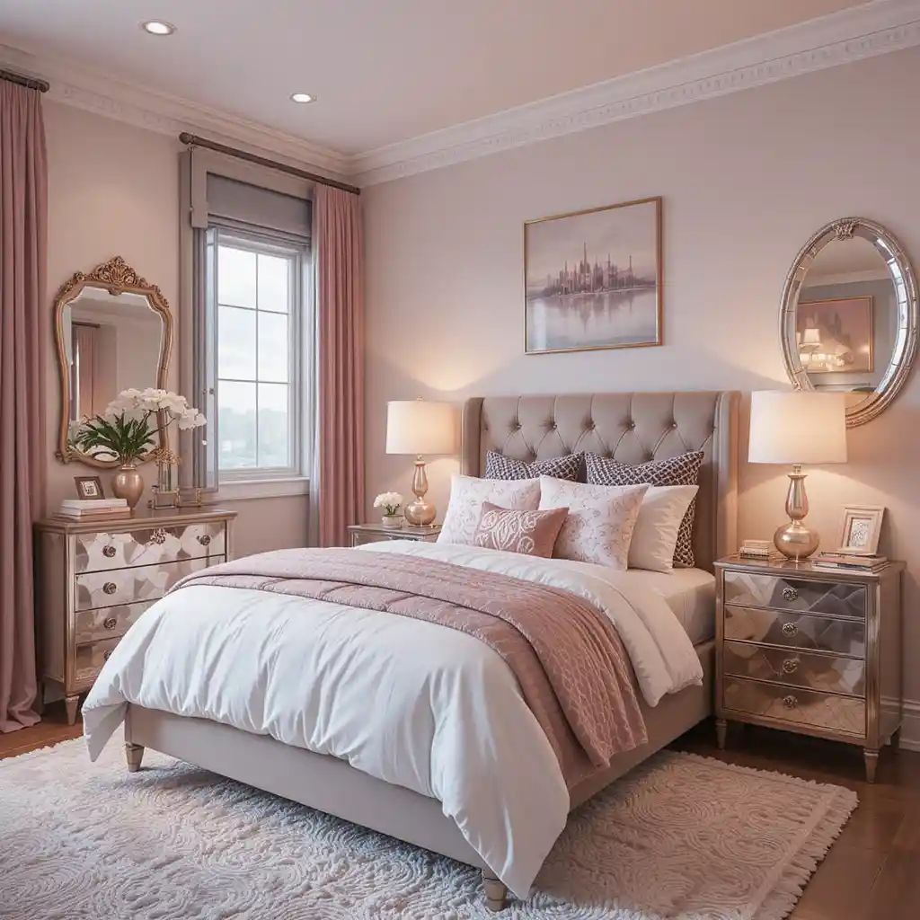 Add rose gold lamps, shiny mirrors, or metallic furniture pieces to create a glamorous teen space. This design style feels both trendy and elegant. Teen Bedroom Ideas