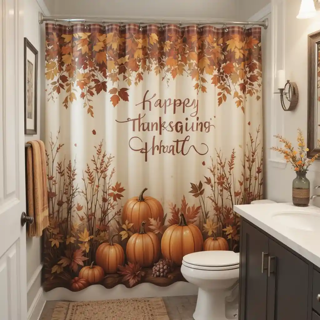 3. Harvest-Themed Shower Curtain
