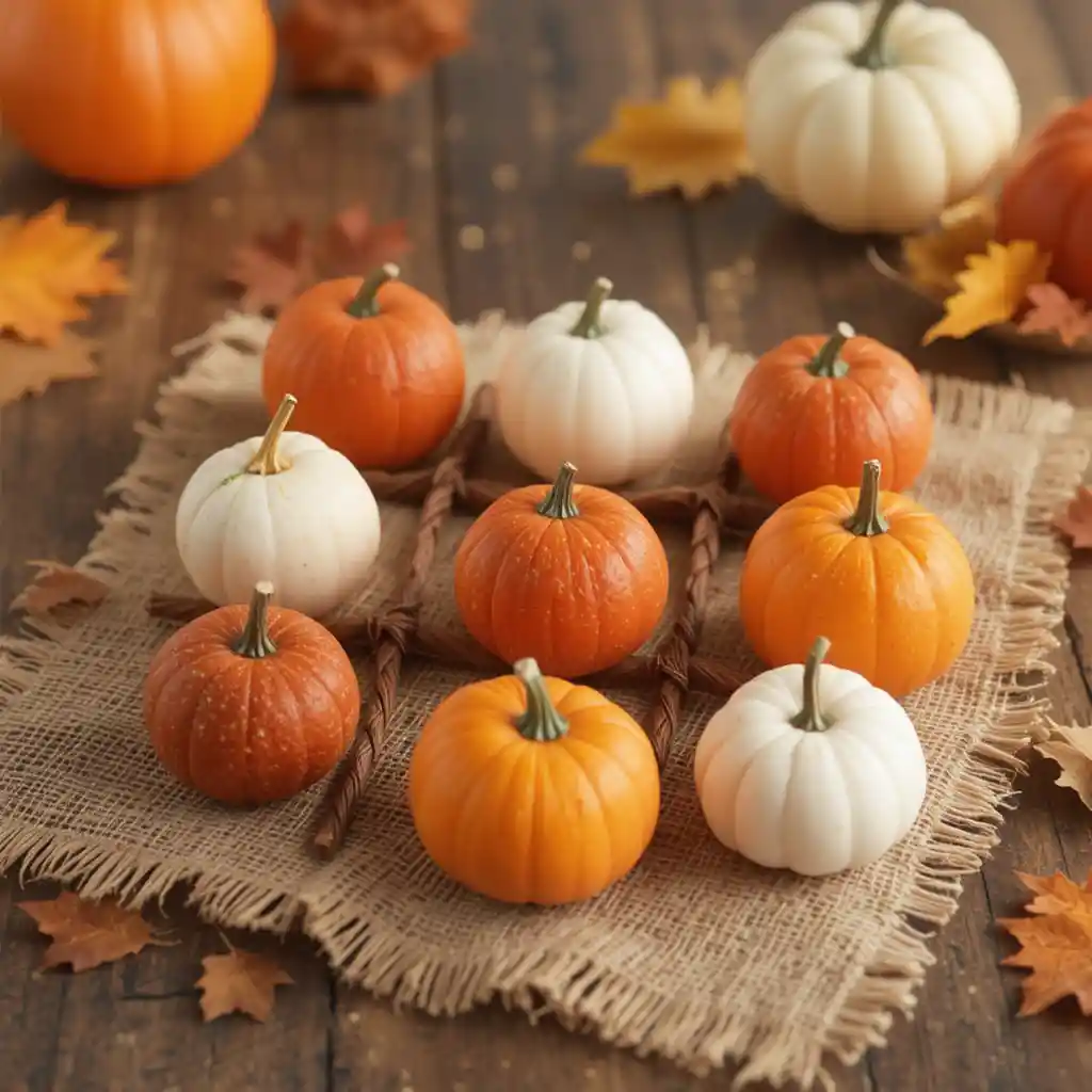 Paint mini pumpkins in two colors and use a burlap square as the board for a fun tabletop game.