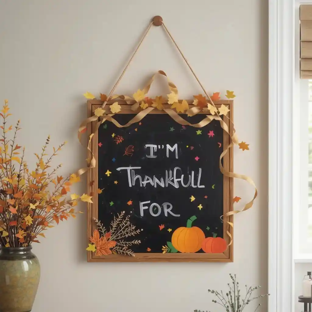 Hang a small chalkboard where kids can draw turkeys, pumpkins, or write “What I’m Thankful For” messages throughout the day.