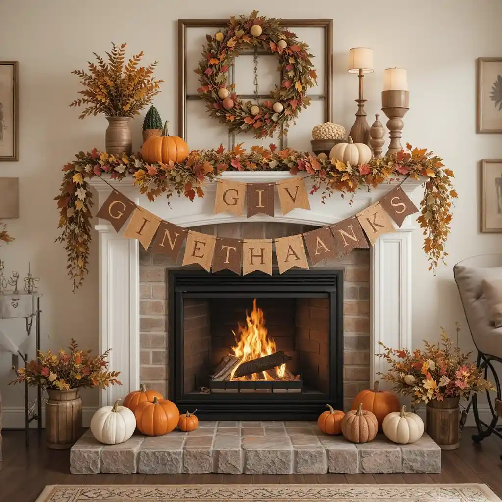 String a “Give Thanks” banner across your fireplace, entryway, or dining area. It adds a festive and meaningful reminder for the season.