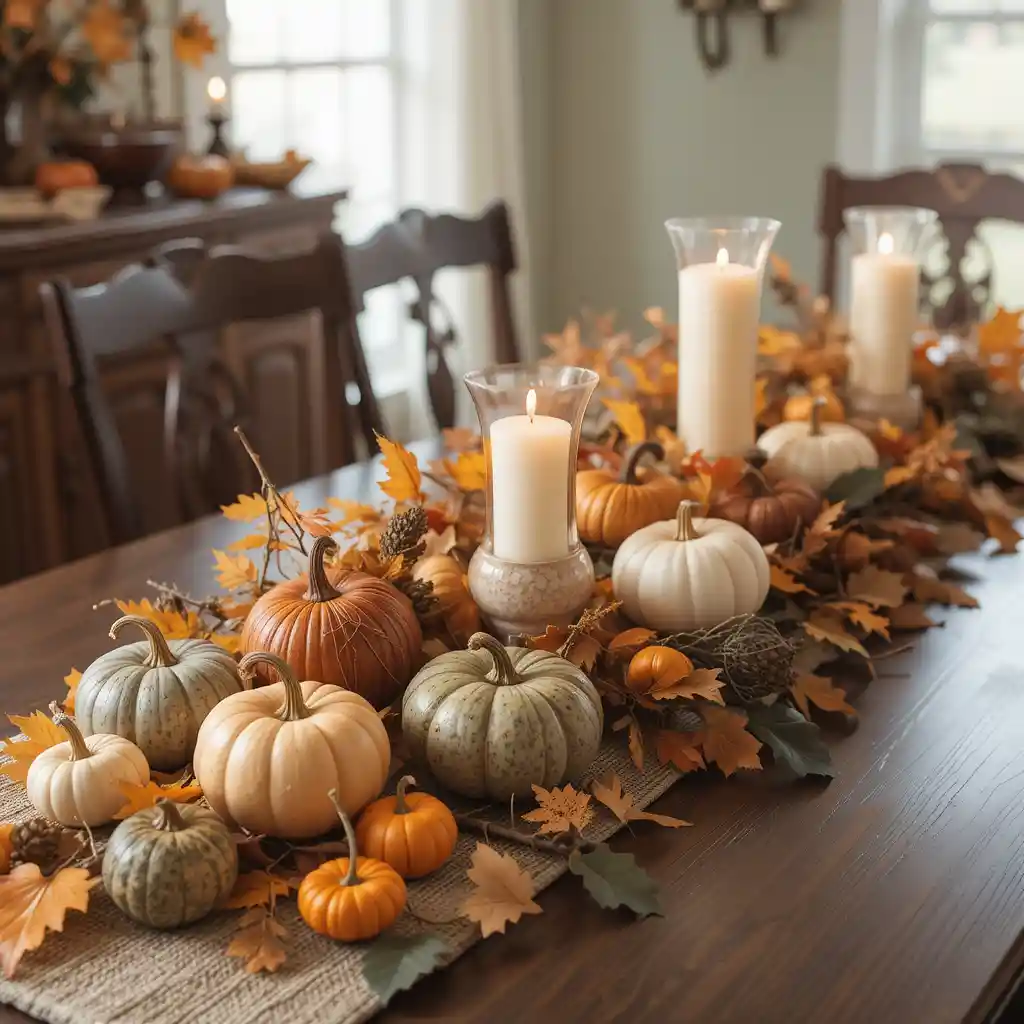 Decorate with a mix of gourds in unique shapes and colors. Scatter them along your table runner or group them in baskets for a natural look.