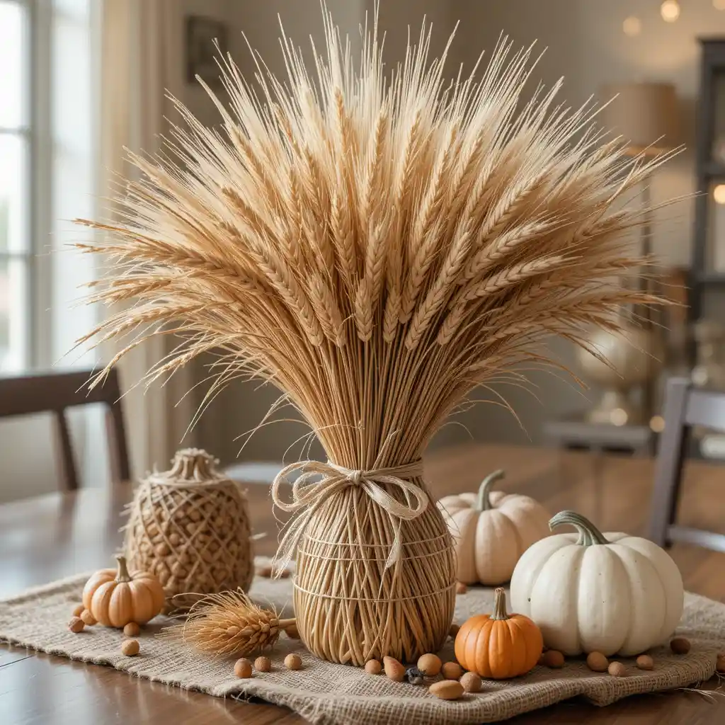 Tie wheat bundles with burlap or ribbon and place them on tables or entryways. They symbolize harvest and gratitude while enhancing rustic décor.