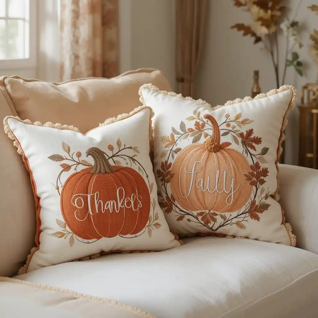 Switch out your regular cushions for Thanksgiving-themed throw pillows with pumpkin or leaf patterns. They instantly update your living room with seasonal flair.