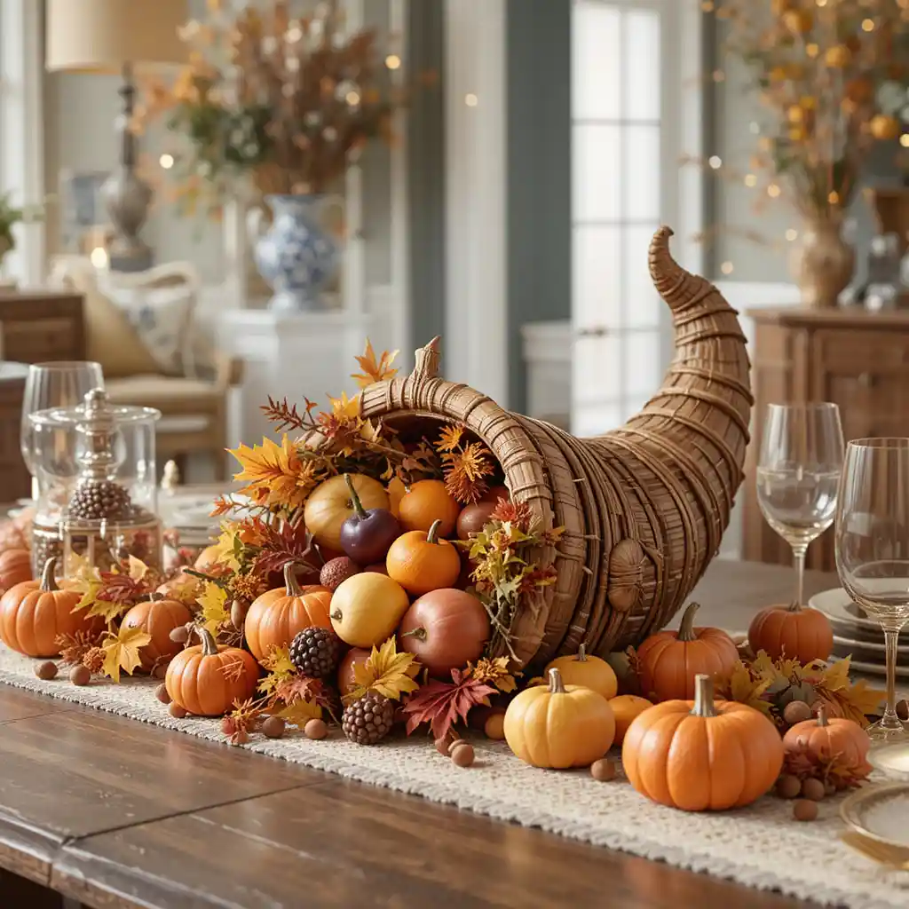 A classic cornucopia filled with fruits, nuts, and autumn leaves symbolizes abundance and gratitude. Place it at the center of your table for a timeless look. Thanksgiving Decorations to Create a Warm