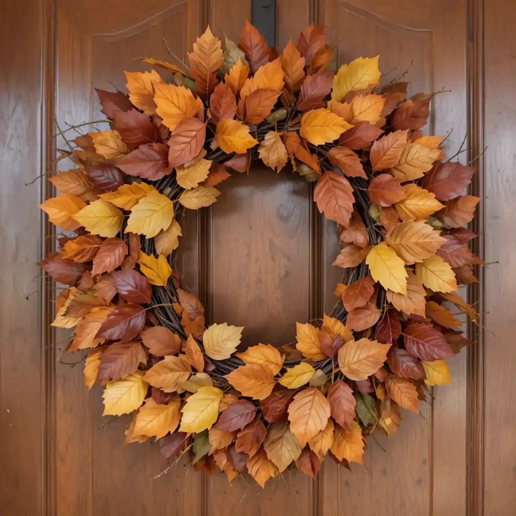 Craft a leaf wreath using real or faux autumn leaves. Hang it on your front door to welcome guests with seasonal beauty.