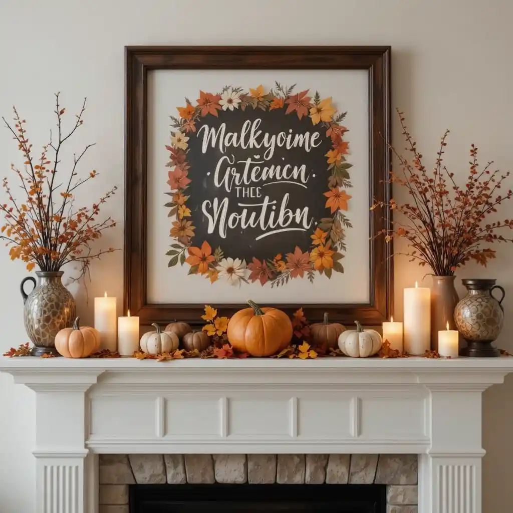Frame and display autumn-themed artwork or Thanksgiving quotes above or on the mantle. This makes the space visually appealing and meaningful for the season.