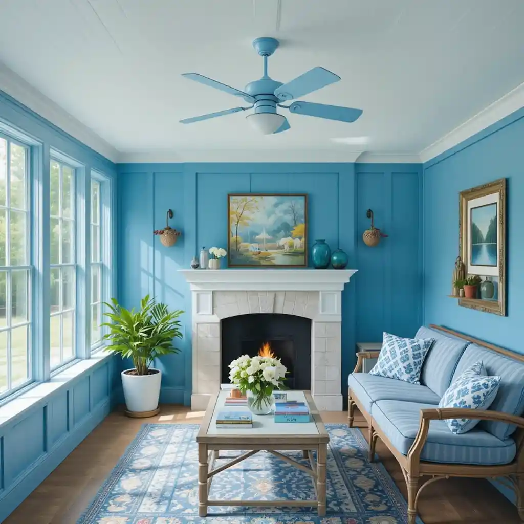 11. Sky Blue Ceiling Fan for Cool Air and Color