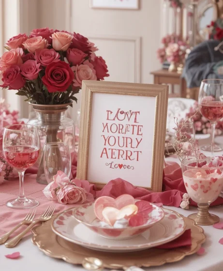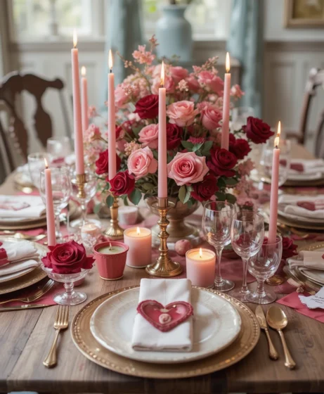 By mixing soft lighting, balanced colors, and personal details, you can design a table that feels romantic without