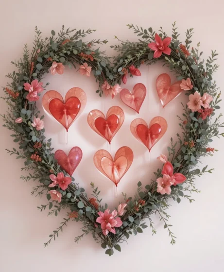 Balance hearts and reds with greenery or eucalyptus. This keeps Valentine’s decorations for home fresh and visually calming Valentine’s Decorations for Home.