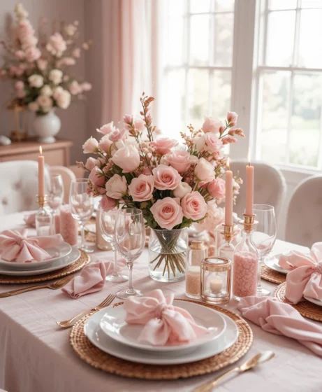 2. Soft Pink Romance Table Setting