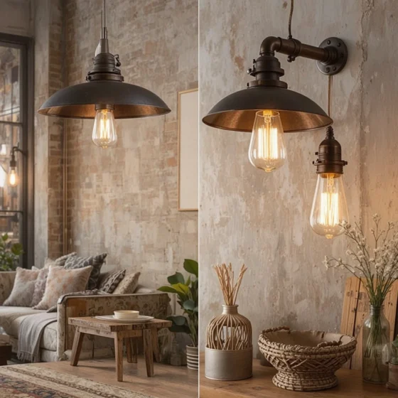 Industrial lamps combine raw metal, exposed hardware, and vintage bulbs for a bold retro feel. The warm glow from filament bulbs enhances the old-fashioned charm. This design fits perfectly in lofts, offices, and modern industrial homes.