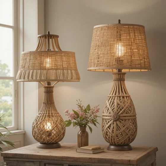Cane-wrapped lamps blend vintage structure with natural materials. Their woven texture adds warmth and lightness to a room. They look especially beautiful in coastal, boho, and neutral-inspired homes Vintage Lamp Ideas.