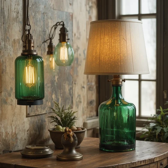 Green apothecary lamps add bold character with their rich jewel-tone glass. The tinted glow creates a cozy, moody ambiance. This style works well in libraries, vintage offices, and dark, atmospheric rooms.