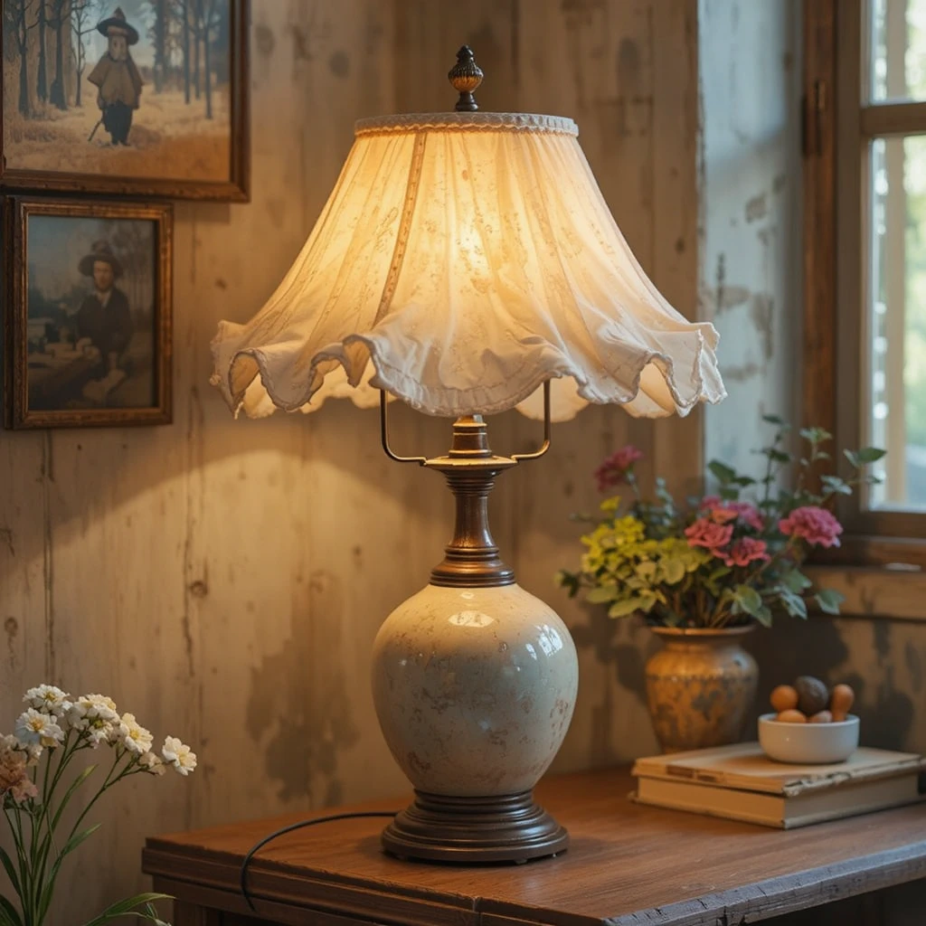 Ruffled-shade lamps bring sweet cottage charm with their soft, frilled edges. Their whimsical look adds comfort and character to cozy homes. They are perfect for reading corners, small bedrooms, or farmhouse-style décor.