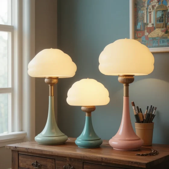 Mushroom lamps from the 60s are trending again for their rounded shape and fun personality. They add a cheerful, nostalgic mood while maintaining a sleek appearance. This lamp works well on side tables, desks, or modern retro-themed rooms.