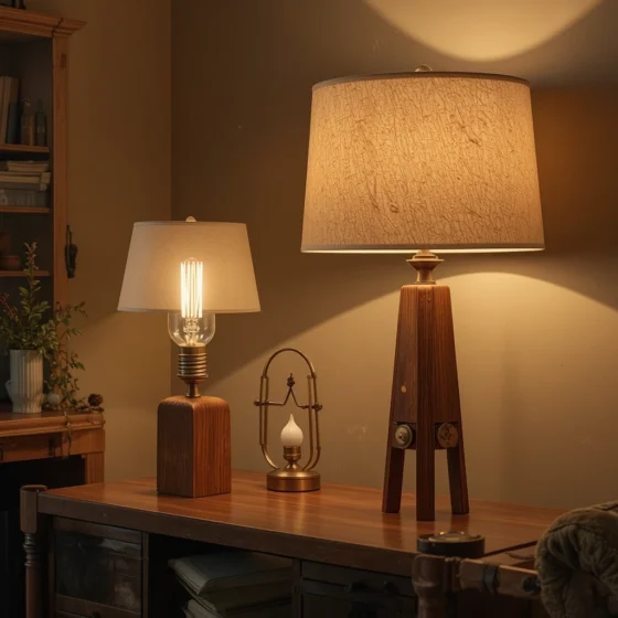 Mid-century lamps with wood bases and brass accents offer warm tones and clean lines. Their minimalist design adds subtle sophistication to any space. This vintage style pairs well with modern furniture, making it easy to mix with today’s décor Vintage Lamp Ideas.