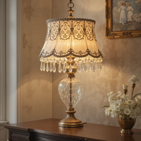 Crystal lamps inspired by Victorian design add sparkle and refined luxury. Their shimmering light brings drama and elegance to formal rooms. These lamps make great statement pieces for entryways, dining rooms, or bedrooms.